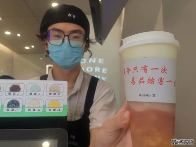“您好,这是您点的‘杨枝甘露’禁毒奶茶!”9月23日下午,市民陈女士在浙江余姚临山一家奶茶店点奶茶时发现,奶茶杯的杯托由品牌宣传换成了印有禁毒宣传标语的特殊款式。“这...