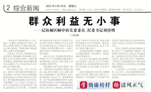 身处在这个特殊的岗位上,我不敢有一丝懈怠,坚持堂堂正正做人、清清白白做事,竭尽全力为群众做好事、办实事、谋利益。防城区峒中镇党委委员、纪委书记刘唐增说。 自参加工作以来,刘唐增始终以刻苦耐劳、勤政廉政、敬业奉献、清白做人作为人生的奋斗目标。...