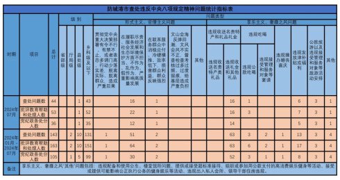 2024年1月至7月,防城港市各级纪检监察机关共查处违反中央八项规定精神问题143起,批评教育帮助和处理163人,党纪政务处分105人。其中7月份,防城港市各级纪检监察机关共查处违反中...