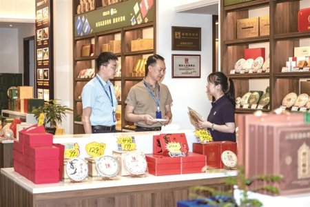 广西壮族自治区柳州市纪委监委聚焦易发多发“四风”问题, 深挖违规公款购买名贵特产、购物卡,违规吃请等问题。图为近日,该市纪检监察干部到某茶叶店了解相关情况。覃智锋...