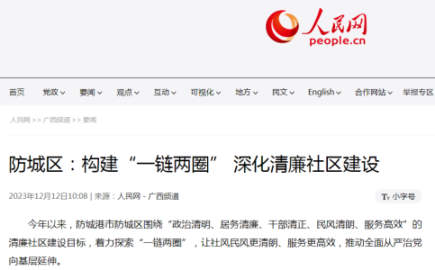 今年以来,防城港市防城区围绕“政治清明、居务清廉、干部清正、民风清朗、服务高效”的清廉社区建设目标,着力探索“一链两圈”,让社风民风更清朗、服务更高效,推动全面从...